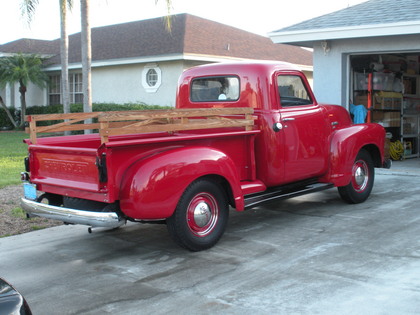 The truck was a cab off restoration and features a 5 window cab, Inline 6 Cylinder with 2 barrel carburetor, Fenton split dual exhaust manifold, original 6 volt electrical system, 3 speed manual transmission on the tree, interior black leather bench seat, new oak floor in the bed, removable oak bed hand rails & driver side rear view mirror.
