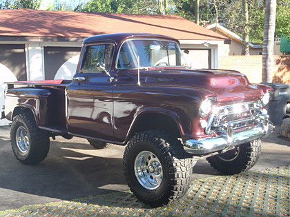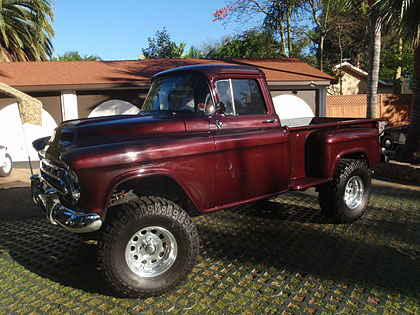 Here at ClassicTrucks.net, we pretty much like all the old trucks. We tend to favor the 2wd street machines, but we appreciate the high riders just as much. We came across this 1957 Chevy that was transferred to a Blazer Chassis. New paint was shot and 37″ X-Terrain tires on 17″ Weld Racing Rims added. Under the hood a 350 engine and turbo 400 trans turn those monster shoes. New upholstery and new glass round out the major additions to this 4×4.