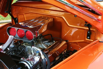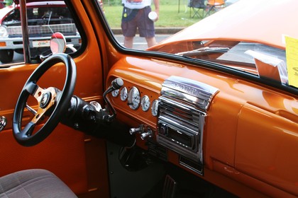 Today’s post is a very nice 1948 Ford F1 from Knoxville, TN. Under the hood rests a 460 big block with a 4 barrel carb, auto. transmission, AC & power steering with power brakes mounted under the floor. A GM sub-frame gives the truckĀ the right stance. A 9 inch Ford rear end puts the big block torque to the pavement. Rally wheels, a beautiful wood bed and Custom molded LED tail lights round out the highlights.