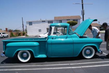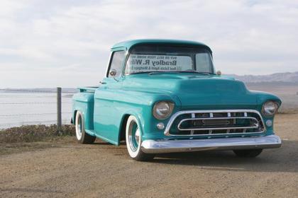 In 2004 the owner, Brad, of San Jose, CA performed a gorgeous frame-off restoration on this 57 Chevrolet short bed step-side with a big back window.